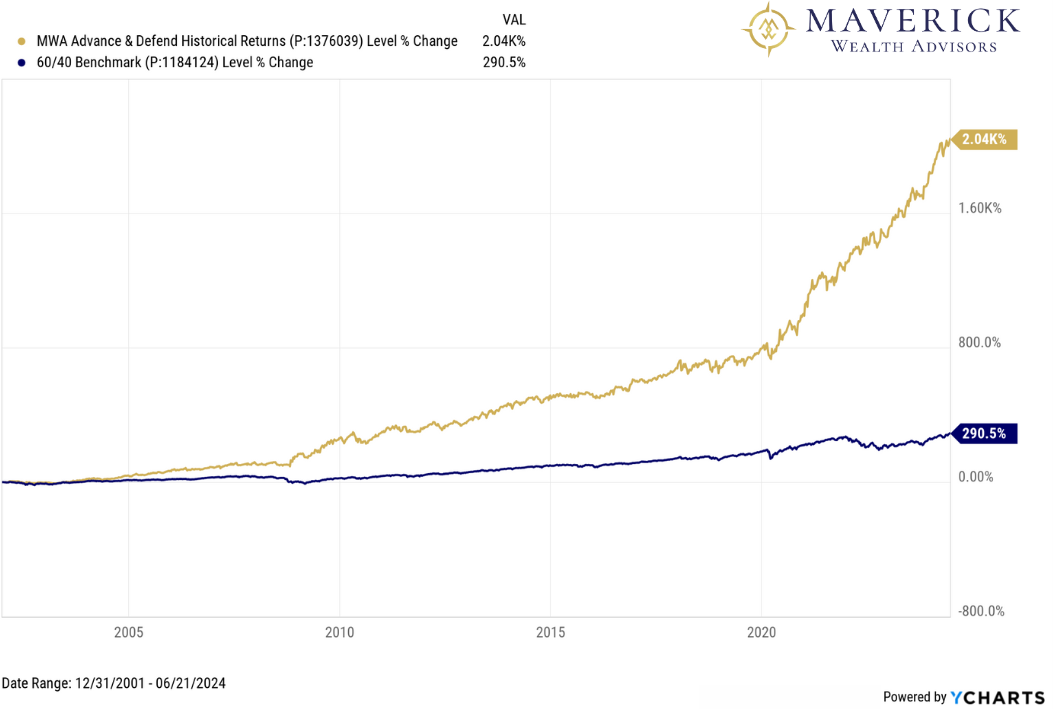 As interest rates rise, the fixed-income landscape evolves, presenting challenges and opportunities for investors. By understanding the relationship between interest rates and fixed-income prices, investors can implement strategies that balance income generation, capital preservation, and risk management within their portfolios. Tactical allocation strategies offer investors a dynamic approach to managing portfolios in response to evolving market conditions. By leveraging flexibility, market insights, and risk management principles, investors can potentially enhance returns and navigate market uncertainties more effectively. Adopting a tactical diversified approach, maintaining flexibility, and staying informed about economic trends are essential for navigating the complexities of today's investment environment effectively. While the 60/40 portfolio has served many investors well over the past 25 years, a tactical investment portfolio has notably outperformed. The return differential between the two strategies has exceeded 1,700% since December 2001.